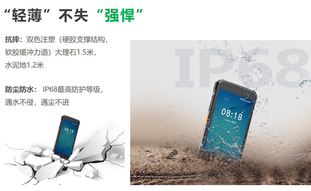 等級,能適應復雜的使用環(huán)境,比如高溫、低溫、灰塵等惡劣工業(yè)環(huán)境。防跌落,適應物流快遞業(yè)經(jīng)常發(fā)生磕碰的工作環(huán)境。